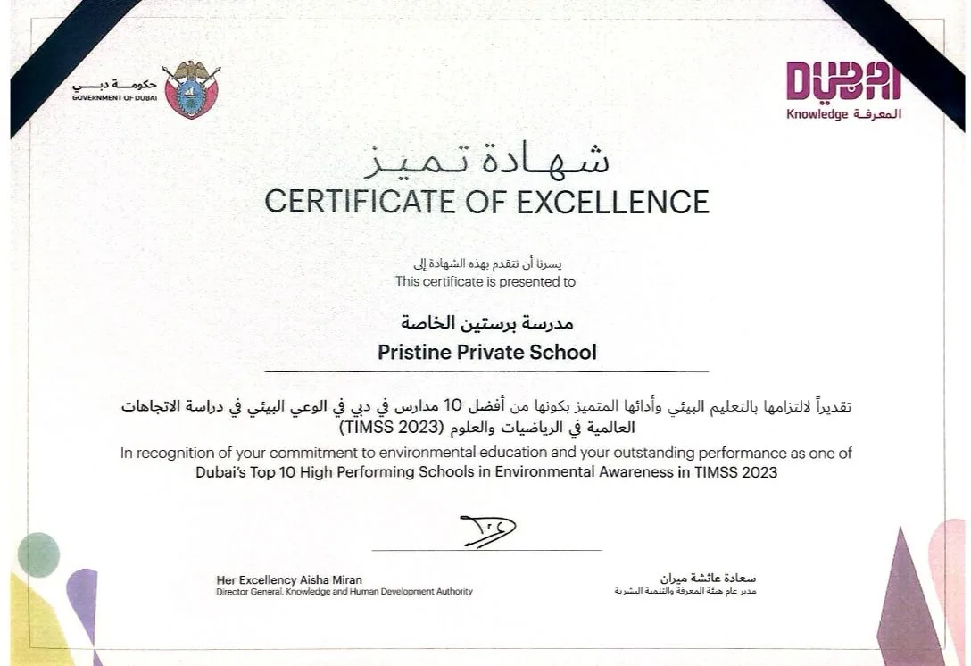 - Pristine Private School was honored among the top three highest-performing UAE schools in Grade 4 (Year 5) and Grade 8 (Year 9) categories for the worldwide Trends in International Mathematics and Science Study (TIMSS 2015).